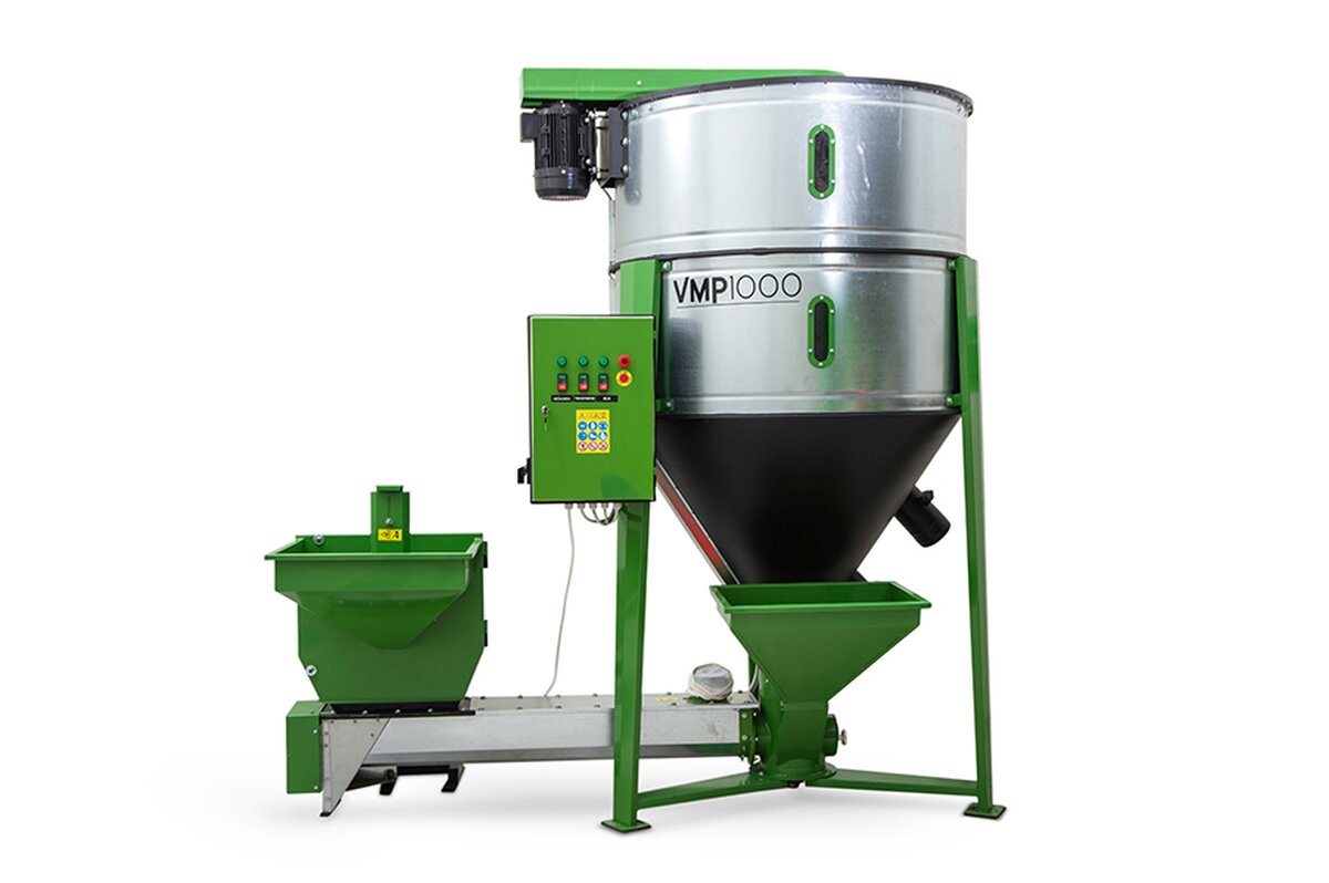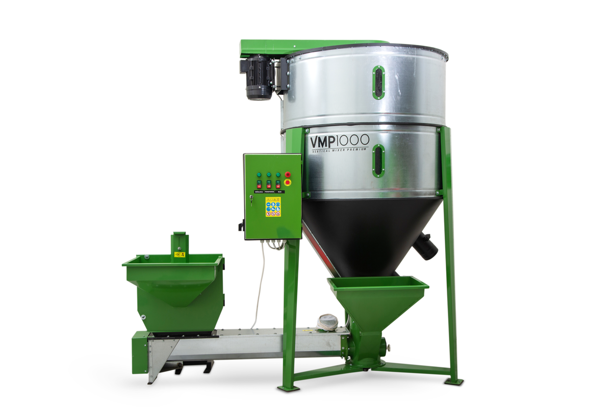 Der vertikale Futtermischer VMP-1000 hat ein Fassungsvermögen von 1000 kg bzw. 1500 Litern und ermöglicht eine schnelle sowie gleichmäßige Zubereitung von Futtermischungen. Der vollständige Mischvorgang dauert etwa 40 Minuten, was eine effiziente und hochwertige Mischung für den landwirtschaftlichen Einsatz gewährleistet.