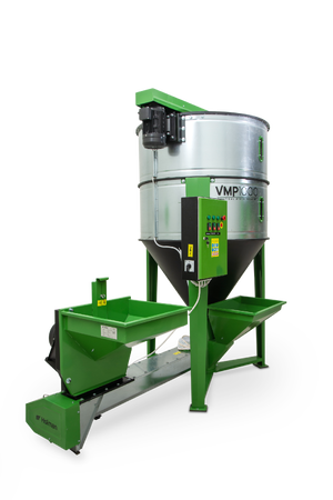 Der vertikale Futtermischer VMK-300 kombiniert eine kompakte Bauweise mit hoher Effizienz und ist ideal für kleinere Futtermengen. Mit einem Fassungsvermögen von 300 kg bzw. 400 Litern eignet er sich perfekt für kleine Betriebe oder Testmischungen. Die Zubereitung einer vollen Mischung dauert rund 15 Minuten, was eine schnelle und energiesparende Arbeitsweise ermöglicht.