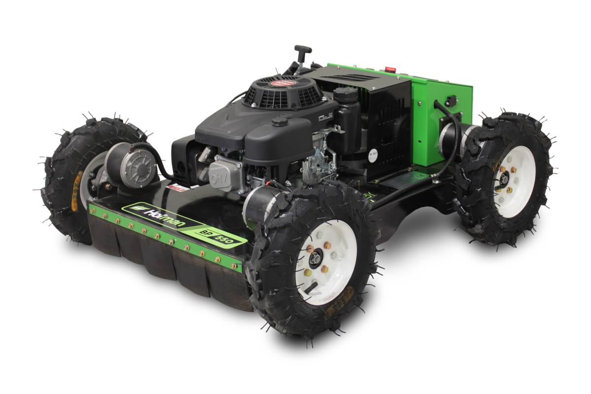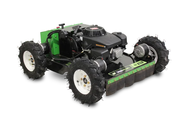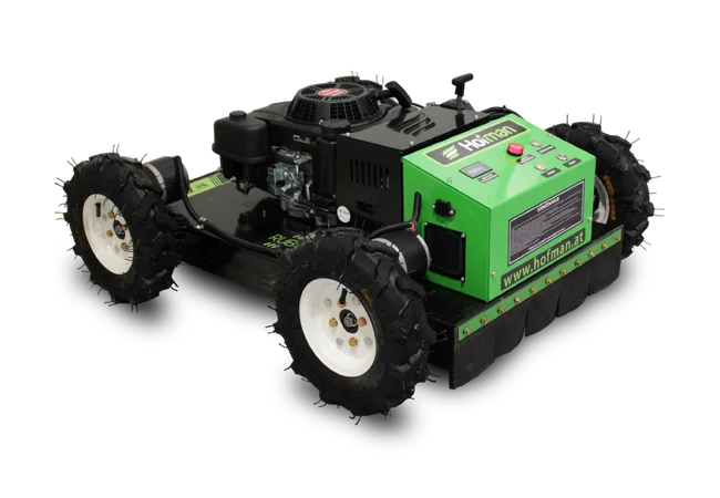 Der Hofman Ruby ist ein benzinbetriebener Rasenmäher der neuen Generation, der mit einer Fernbedienung gesteuert wird. Er ermöglicht dem Benutzer die vollständige Kontrolle über den Mähvorgang – auch auf schwer zugänglichem oder gefährlichem Gelände. Er ist in zwei Arbeitsbreiten erhältlich, 550 mm und 1000 mm, und eignet sich somit sowohl für kleinere als auch größere Flächen. Der Mäher wird von einem zuverlässigen und leistungsstarken Loncin-Motor angetrieben, der eine konstante Leistung und hohe Effizienz garantiert. Ein herausragender Vorteil ist die außergewöhnliche Möglichkeit zur Anpassung der Schnitthöhe, wodurch sich das Gerät präzise an den Untergrund und die Vegetationsdichte anpassen lässt. Er bewältigt problemlos hohes, dichtes Gras. Dank seines Fahrwerks und Antriebs eignet sich der Mäher sowohl für ebene Flächen als auch für Hanglagen bis 45 Grad, je nach Modell. Das Modell BP1000 eignet sich auch für professionelle Anwender, kommunale Dienste und anspruchsvolle Privatanwender, die eine leistungsstarke, zuverlässige und benutzerfreundliche Lösung für effektives Mähen suchen.