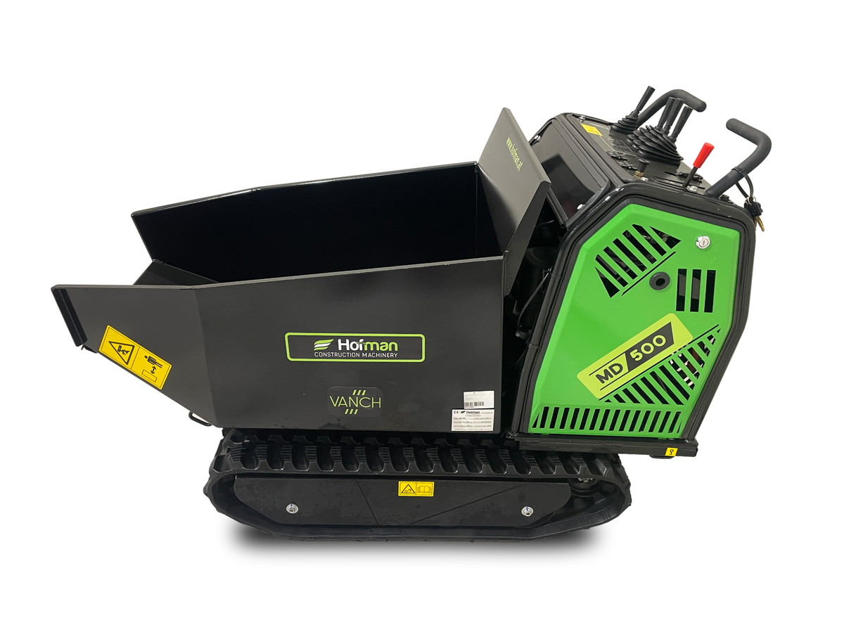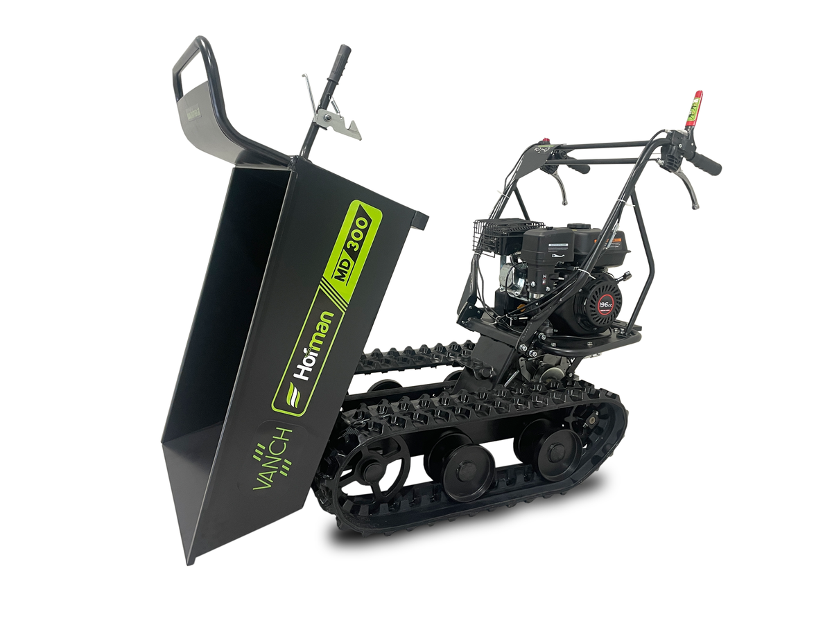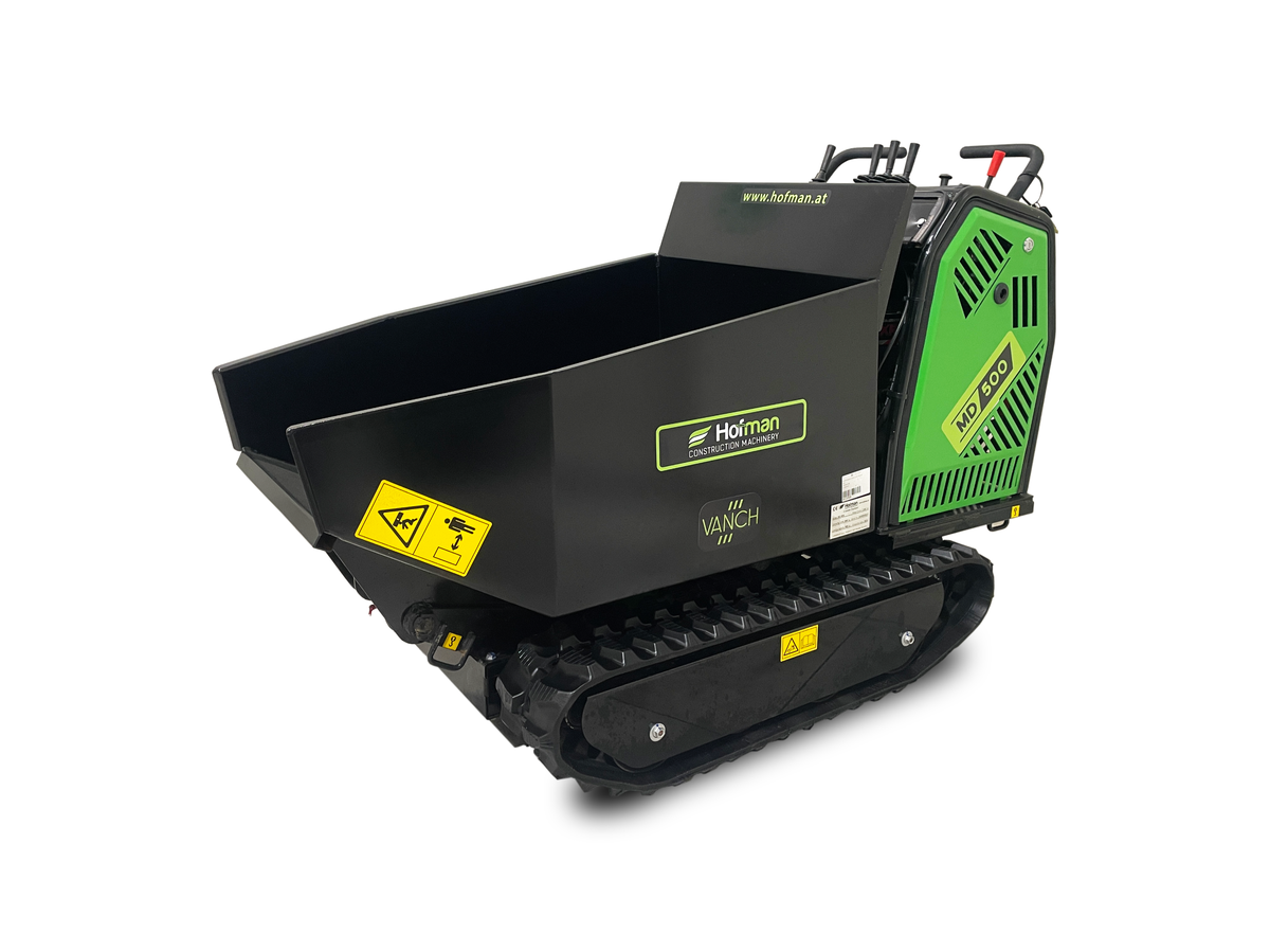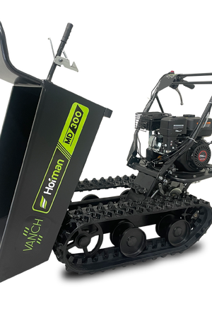 Der Raupendumper HOFMAN VANCH ist ein zuverlässiger Helfer bei zahlreichen Erdarbeiten. Er hat einen zuverlässigen B&S-Motor, auf Anfrage können Sie auch einen Kubota-Motor kaufen. Die praktische Ladeschaufel ermöglicht schnelles und effizientes Laden der Ladung. Mit hoher Hubhöhe des Behälters kann die Ladung auch auf einen Anhänger oder eine andere höher gelegene Fläche verlagert werden. Die Bedienung erfolgt einfach über ergonomisch gestaltete Steuerhebel.