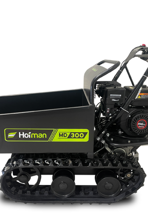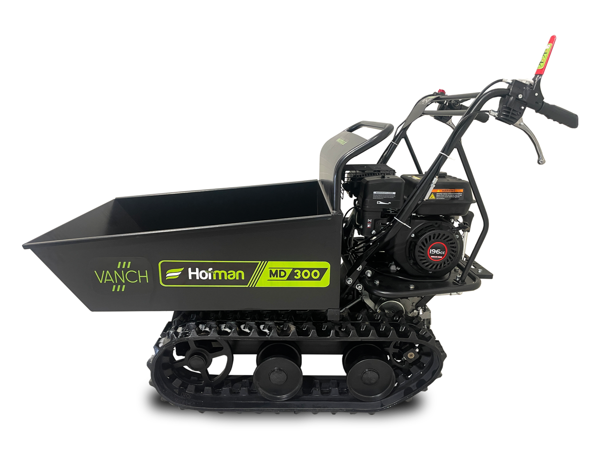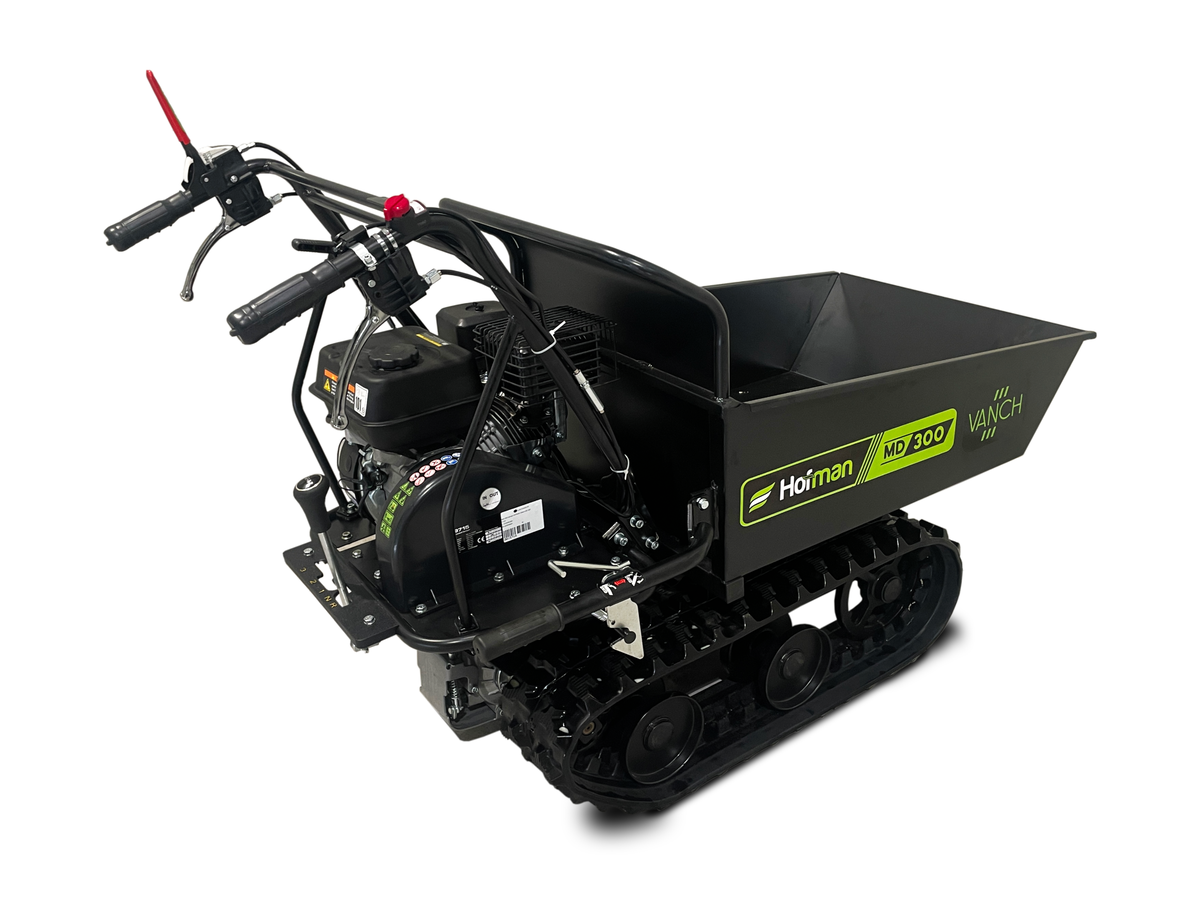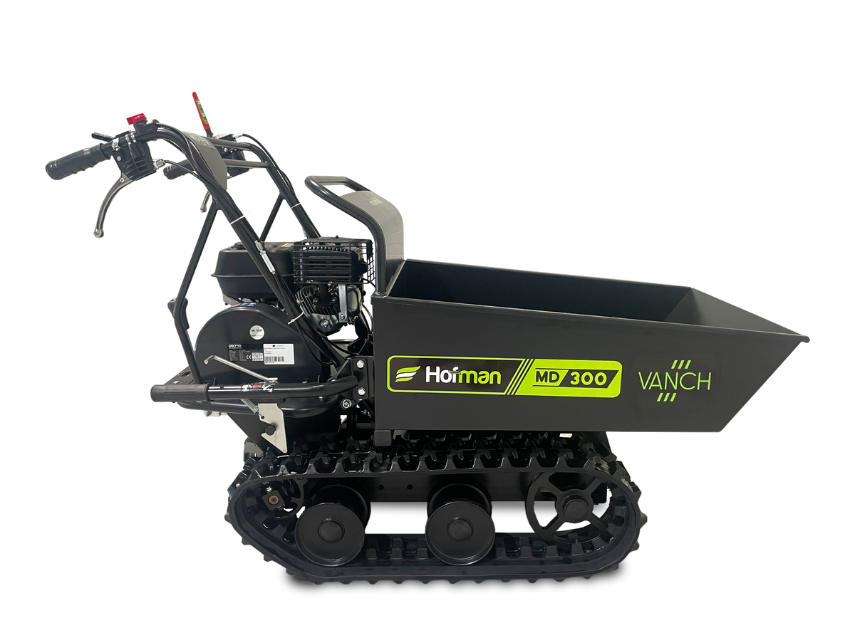 Der MD 300 ist ein kompakter Minidumper mit einer Tragkraft von 300 kg, ideal für kleinere Bau-, Landwirtschafts- oder Gartenarbeiten. Er wird von einem 196 cm³ Loncin/Zongshen Benzinmotor mit 6,5 PS angetrieben und verfügt über 180 mm breite Gummiketten für bessere Stabilität. Durch das schmale Fahrwerk eignet er sich besonders gut für weiche Böden und enge Arbeitsbereiche.
