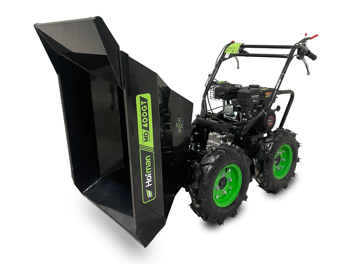 Der MD 400 GT ist ein robusterer Minidumper mit einer Tragkraft von 400 kg, konzipiert für anspruchsvollere Transportaufgaben auf Baustellen und in der Landwirtschaft. Er ist mit einem zuverlässigen 196 cm³ Loncin/Zongshen Benzinmotor und einem Handschaltgetriebe mit drei Vorwärts- und einem Rückwärtsgang ausgestattet. Dank seiner Wendigkeit und kompakten Bauweise eignet er sich hervorragend für enge Arbeitsbereiche.