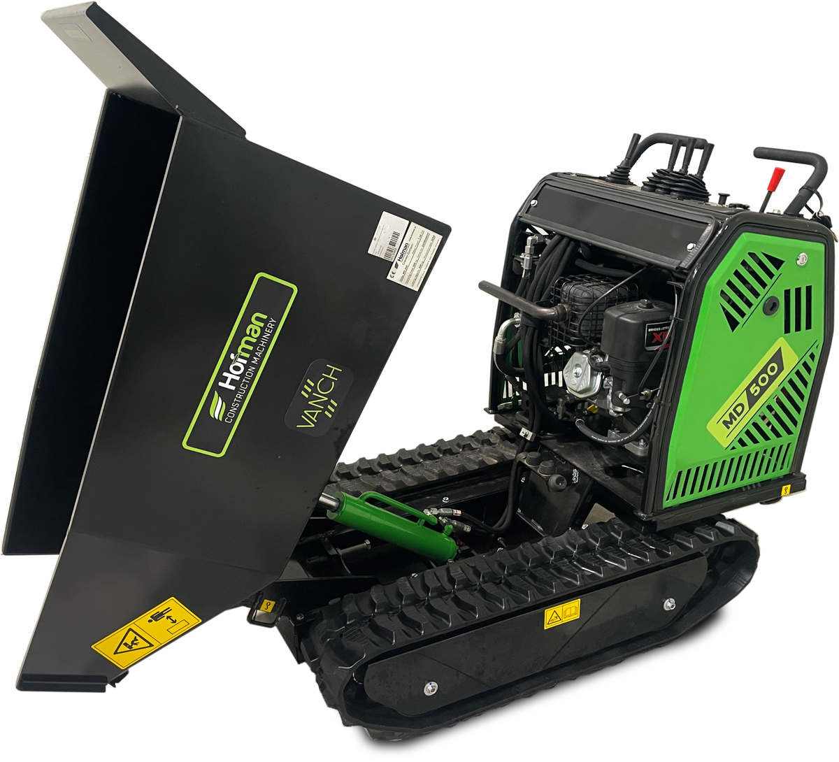 Der MD 500 ist ein kompakter und wendiger Minidumper, ideal für den Einsatz in engen oder schwer zugänglichen Bereichen. Angetrieben von einem zuverlässigen B&S 270-Benzinmotor, bietet er eine Nutzlast von 500 kg. Die 180 mm breiten Gummiketten sorgen für optimalen Halt auf unebenem Gelände. Perfekt für Garten-, Landschafts- und leichte Bauarbeiten.